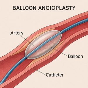Definition: A procedure to open a narrowed coronary artery using a small balloon that is inflated at the site of the blockage.