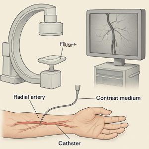 Definition: The same procedure as femoral angiography, but access is gained through the radial artery in the wrist.
